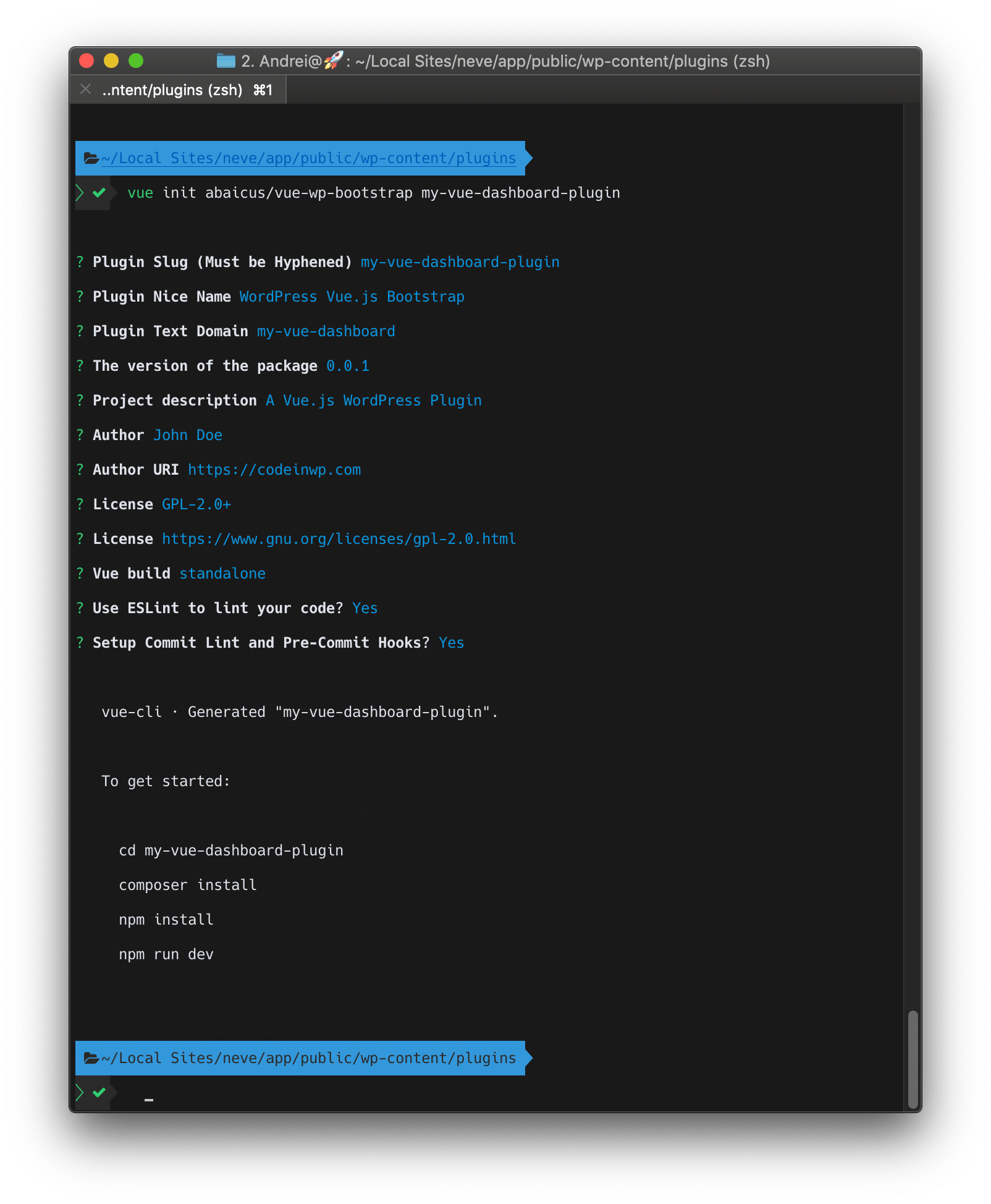 $ vue init abaicus/vue-wp-bootstrap my-vue-dashboard-plugin