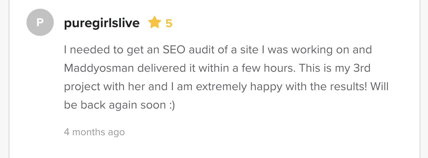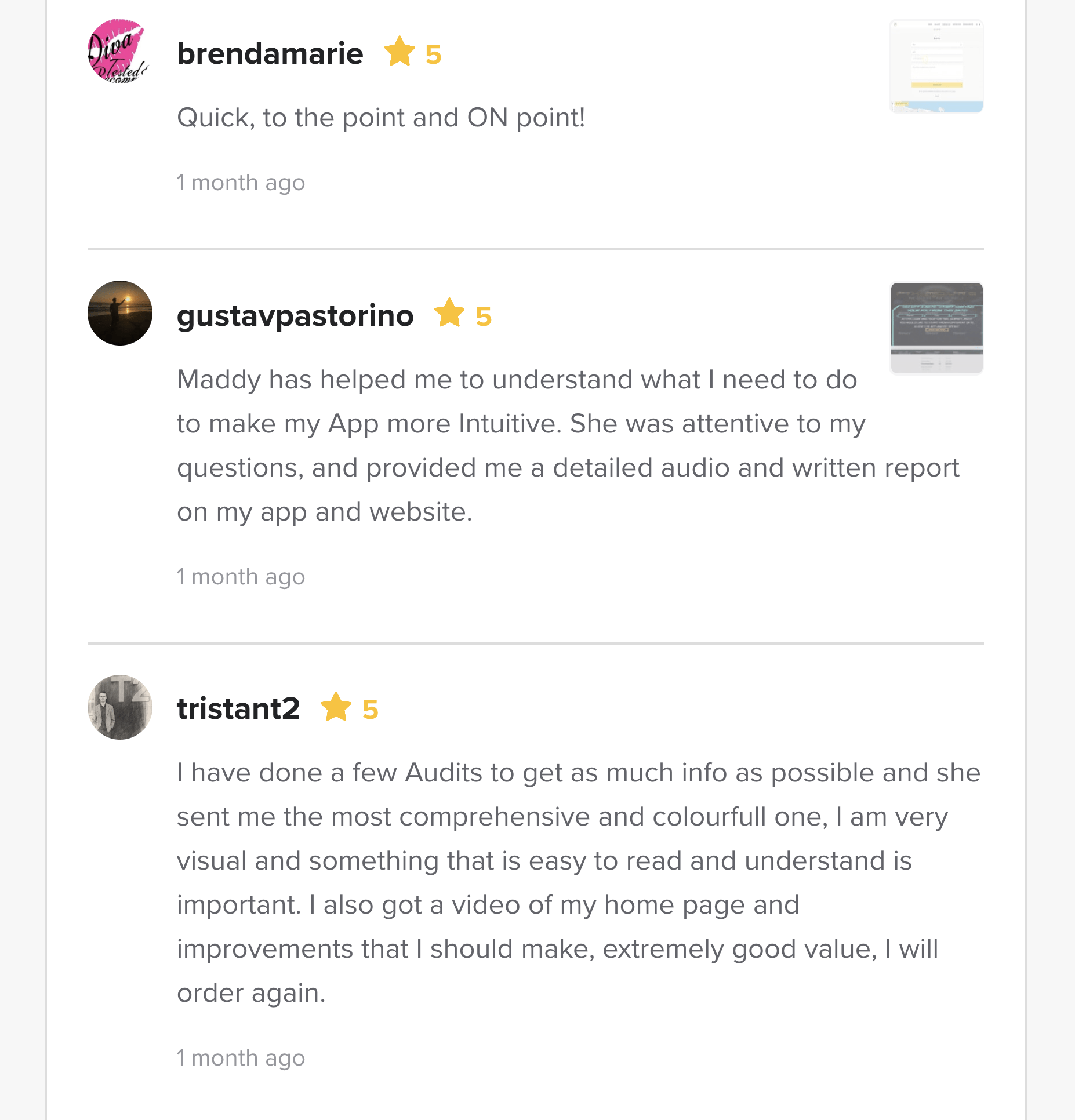 Only later on you can experiment with other Gigs or more tailor-made offers. For example, something I started doing recently is connect the dots between my UX and SEO audit Gigs for buyers.
