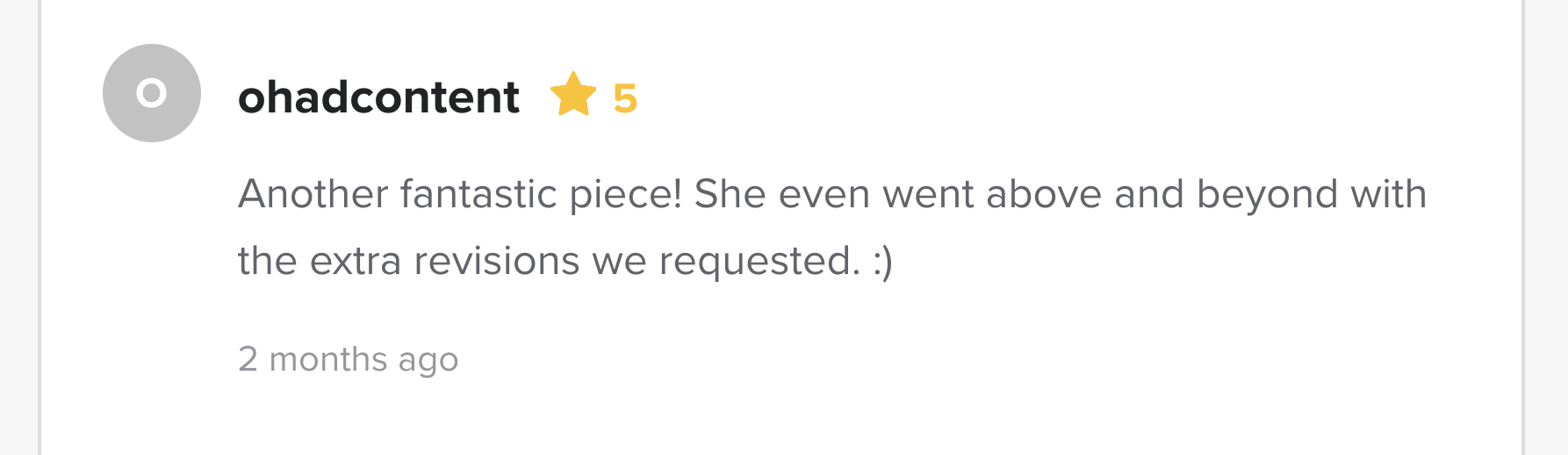 And when I go above and beyond with a revision request, I usually get a great review (plus a tip):