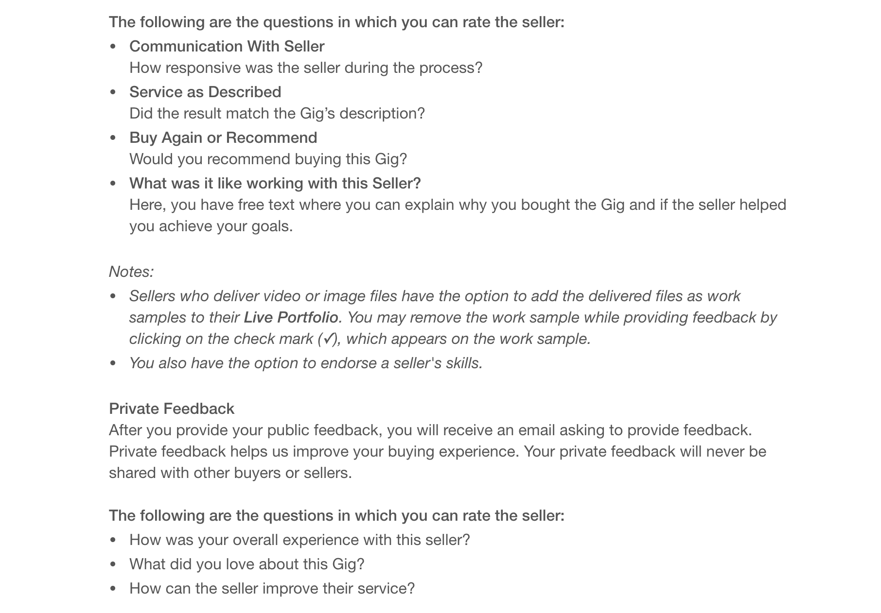 I asked Fiverr PR Manager Holly Steffy if there was any reason to feel compelled to reply to a seller’s review and she said: