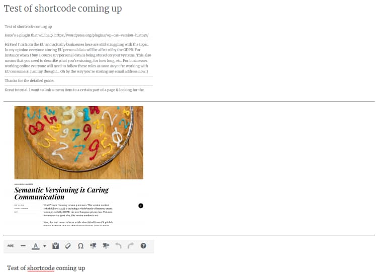 Example of a WordPress Shortcode in Post Content on a Production Site