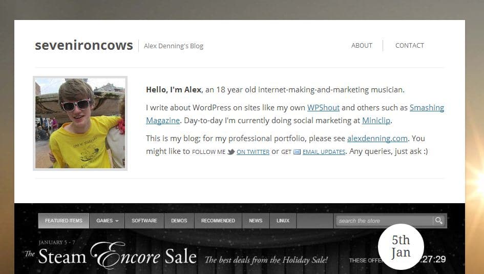 You might also want to check out my new personal blog, sevenironcows.com, which I’m going to be updating at least once a week during 2013. Alternatively, just follow me on Twitter and get updates about all my crazy goings-on. See you around, folks 🙂