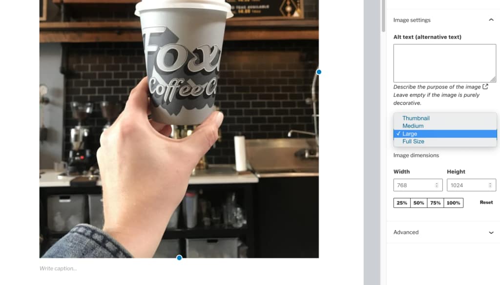 - Change the image size you embed in a post. When you add an image to a post in WordPress, you’ll select a size. If you’re wanting the image to look big, give it its own line (like I did with the one below) and pick the “Large” or “Full Size” “Image size” for the image.