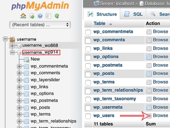 wp-config.phpfile will tell you for sure.) - Once all the tables in the database appear, look for