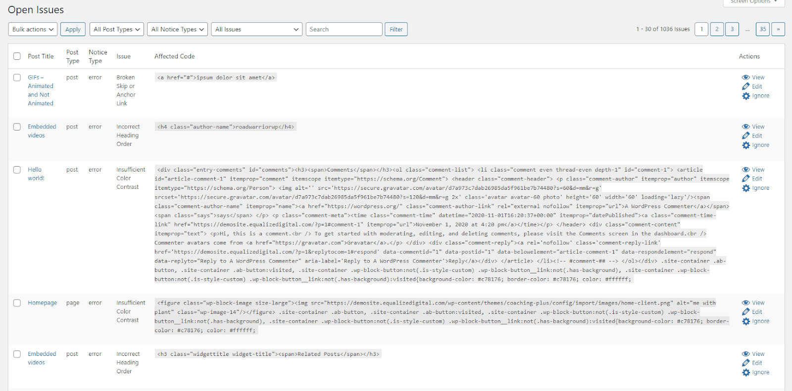 The Pro version of Accessibility Checker includes centralized lists of open issues and bulk scanning on a schedule, saving time over running single-page scans one-by-one.