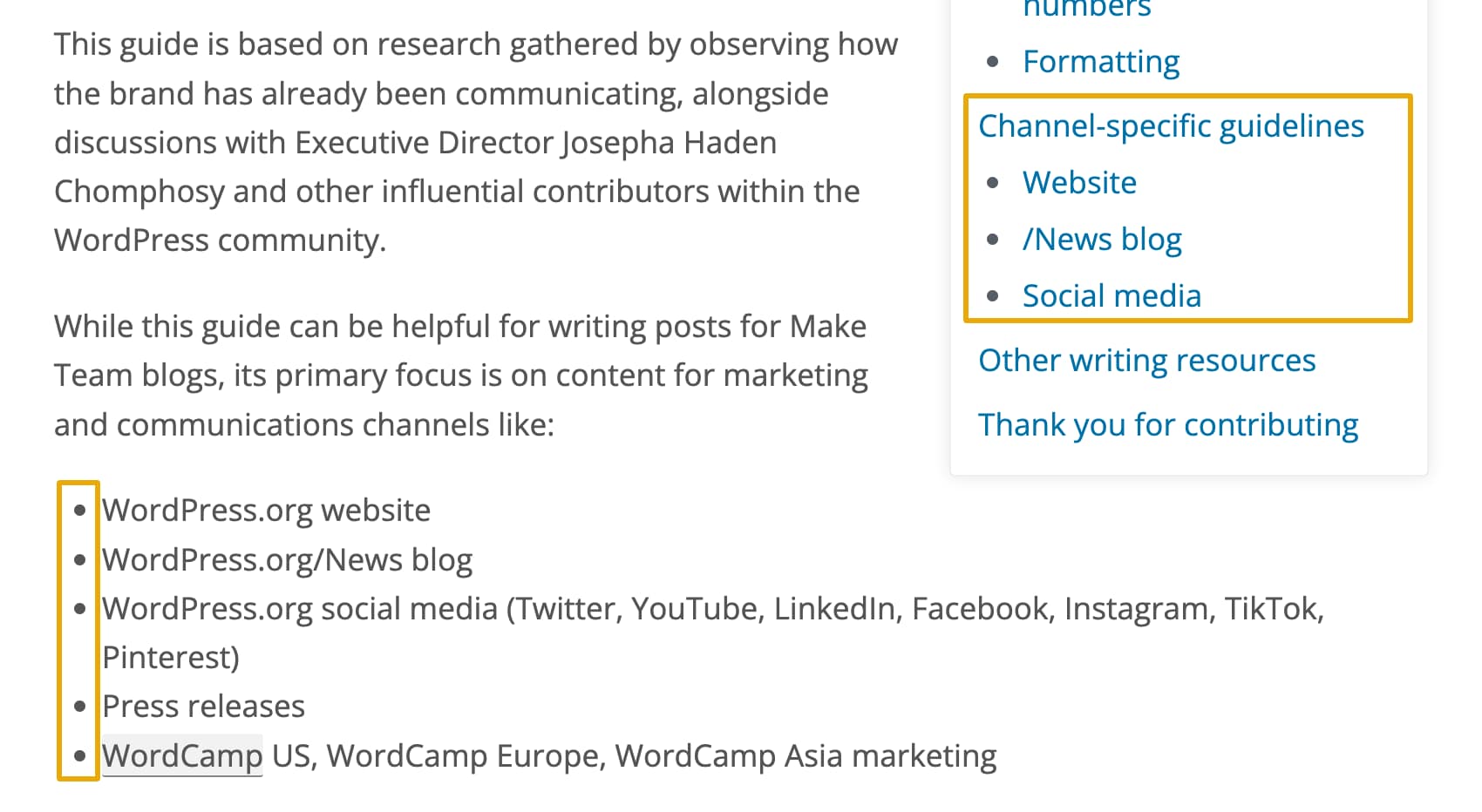 This means that the priority should be ensuring that it is used consistently by everyone who publishes text on behalf of WordPress, whether this is on WordPress.org, emails, social media, etc.