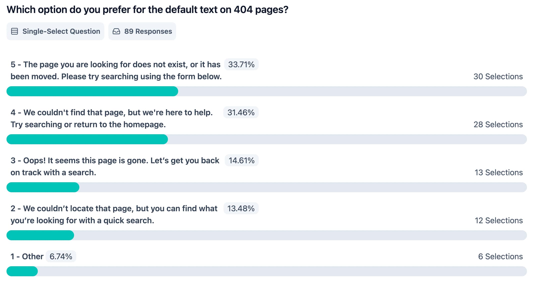 💡 Main takeaway: Users expect a formal/technical tone of voiceIn five out of six questions here, respondents preferred alternative versions to the original texts. This was even more surprising as, to prevent any bias, the original/default text was not highlighted or marked in any way.