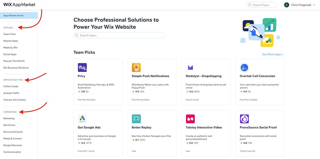 But numbers are just part of the story. When it comes to finding stuff, Wix’s range of intuitive categories makes it easy to find what you need.