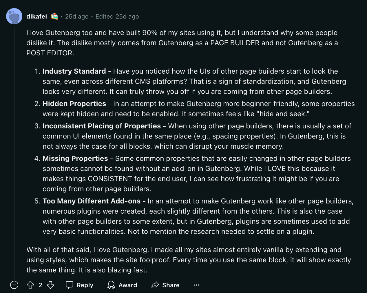I analyzed over 340 opinions from platforms like Reddit, Twitter, YouTube, and WordPress.org. I also spoke with developers, colleagues, and other professionals in the WordPress community to get a well-rounded perspective.