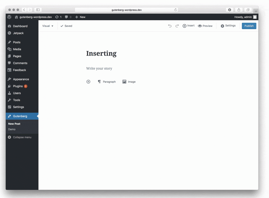- As you write, if you move your mouse, Gutenberg’s options come up. These options for the current paragraph often partially obscure the content of the previous paragraph.